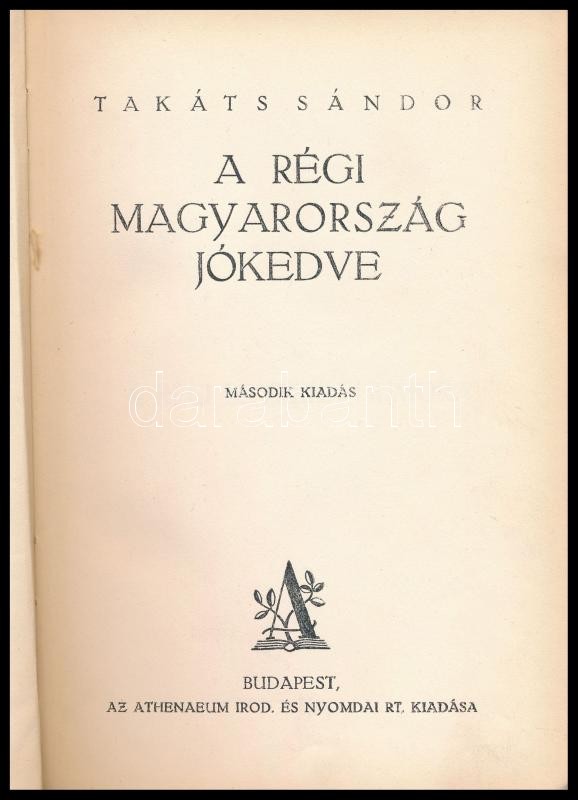 Takáts Sándor: A régi Magyarország jókedve Bp., é.n., Athenaeum. Másod... https://www.darabanth.com/de/387-Fernauktion/387.0/Bucher/Bucher-Andere-kuriositaten~1000018/Takats-Sandor-A-regi-Magyarorszag-jokedve-Bp-en-Athenaeum-Masodik-kiadas-Kiadoi-ara~II2319888