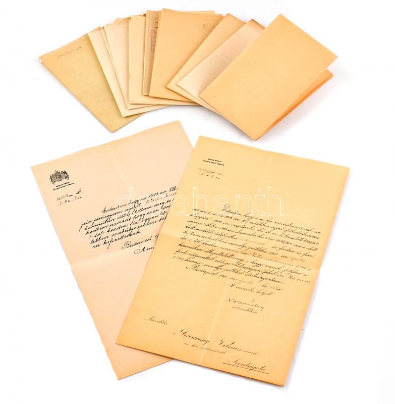 1905-1916 Székelyudvarhely-Szentágota, erdészjelölt, később erdőmérnök részére szóló hivatalos iratok, erdőmesteri, miniszteri tanácsosi ...stb aláírásokkal, közte egy államtitkári aláírással, összesen 11 db.