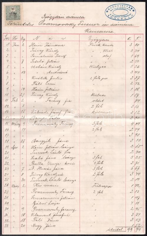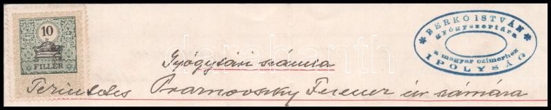 Beschreibung: 1913 Ipolyság, Gyógytári számla Berkó István Gyógyszertárának pecsétjével, okmánybélyeggel