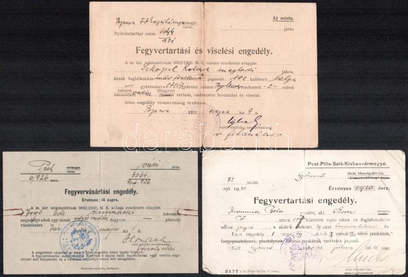 1916-1921 Fegyvervásárlási, fegyvertartási, fegyverviselési engedélyek https://www.darabanth.com/de/387-Fernauktion/387.0/Kunst-Dokumente-andere-Sammelgebiete/Dokument~20/1916-1921-Fegyvervasarlasi-fegyvertartasi-fegyverviselesi-engedelyek~II2316016