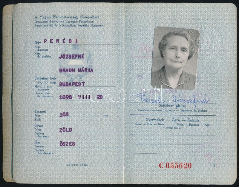 1967 Magyar Népköztársaság által kiállított fényképes útlevél, kék, ny... https://www.darabanth.com/de/387-Fernauktion/387.0/Kunst-Dokumente-andere-Sammelgebiete/Dokument~20/1967-Magyar-Nepkoztarsasag-altal-kiallitott-fenykepes-utlevel-kek-nyugatra-nemet-es~II2320314