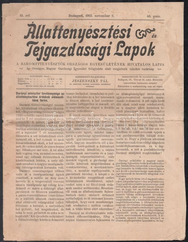 1903 Állattenyésztési és Tejgazdasági Lapok III. évfolyamának 45. szám... https://www.darabanth.com/de/387-Fernauktion/387.0/Kunst-Dokumente-andere-Sammelgebiete/Drucksachen~33/1903-Allattenyesztesi-es-Tejgazdasagi-Lapok-III-evfolyamanak-45-szama-14p~II2322026
