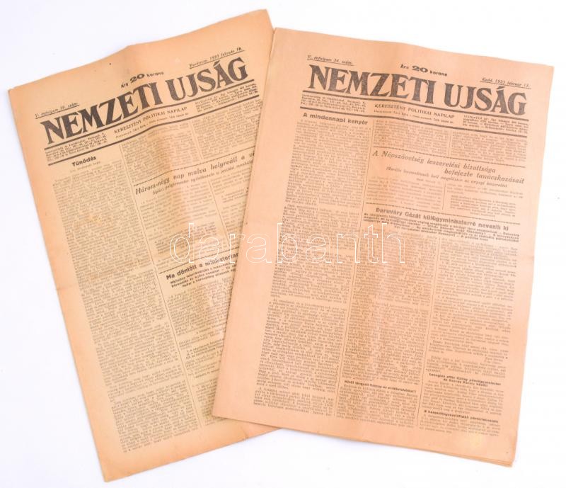 Beschreibung: 1923 A Nemzeti Újság V. évfolyamának 34. és 39. száma