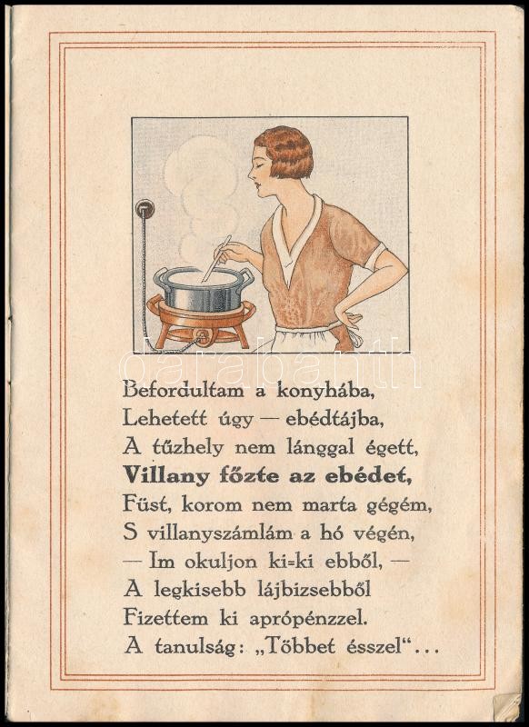 1927 "Kellemessé teheti életét, időt pénzt és munkát takarít meg, ha háztartásban villanyáramot használ" Bp., Hamburger és Birkholz-ny., kissé foltos, 8 sztl. lev.