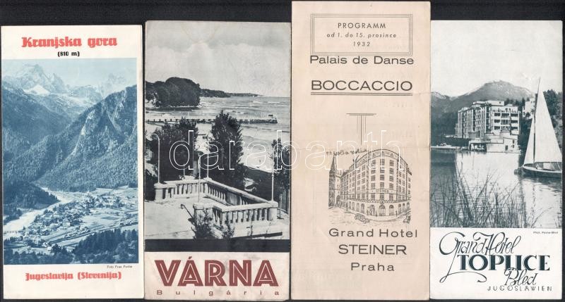 Beschreibung: cca 1930 4 db utazási prospektus (Kranjska gora, Toplice, Várna, stb.)