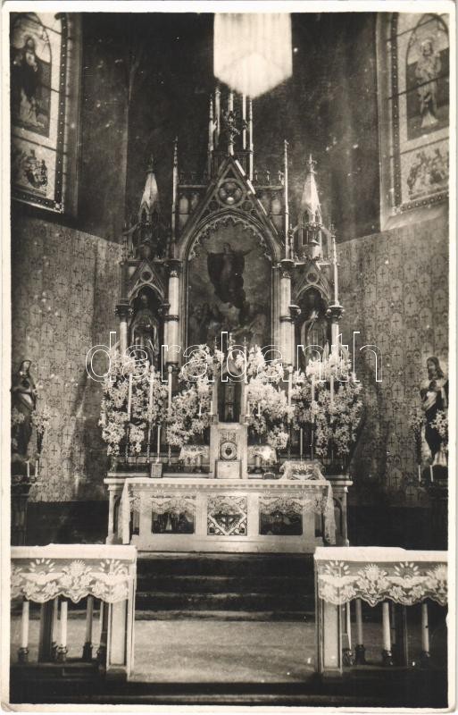 1938 Jászkarajenő, Római katolikus templom, belső, oltár. photo (EK) https://www.darabanth.com/de/388-Fernauktion/388.0/Ansichtskarten/Ungarn~2000005/1938-Jaszkarajeno-Romai-katolikus-templom-belso-oltar-photo-EK~II2331372