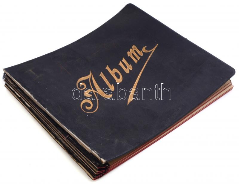 1904 Magas élet a századfordulón feliratozott fotók a budapesti zsidó polgárság életéből: Jókai Mór ravatala a Nemzeti múzeumban, korcsolyázás a Városligetben, evezősök a Dunán, automobilok a Park club előtt, zsidó esküvő, gr. Andrássy Gyula, karlsbadi fotók, kirándulás 56 db érdekes, feliratozott fotó album borítóval