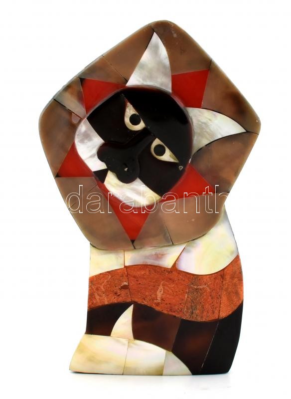 Beschreibung: Art deco stílusú stilizált orozlán szobor, fa, gyöngyház berkással, jelzés nélkül, kopásnyomokkal, m: 16 cm