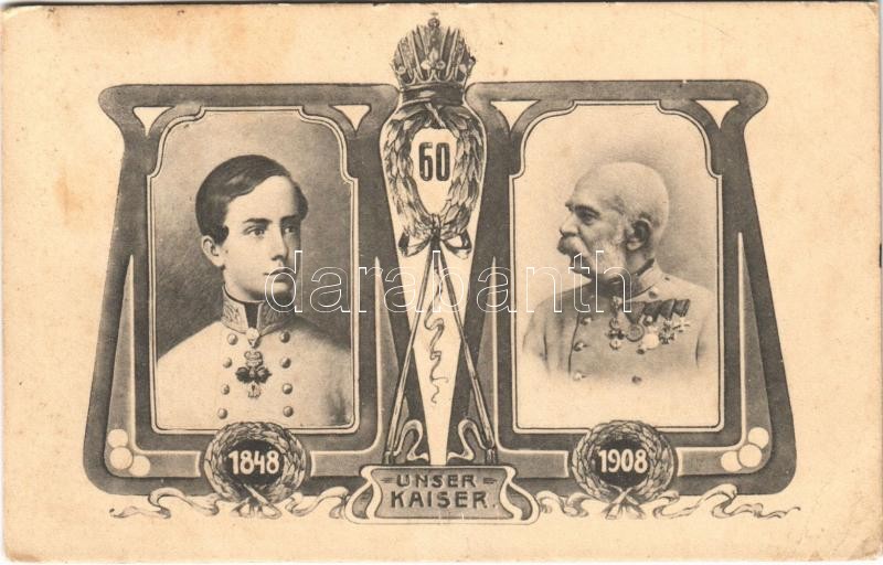 1848-1908 Ferenc József uralkodásának 60. évordulója alkalmából kiadott lap / Kaiser Franz Josef I / Franz Joseph's 60th anniversary of reign. Art Nouveau. B.K.W.I. 941-1. (EB)