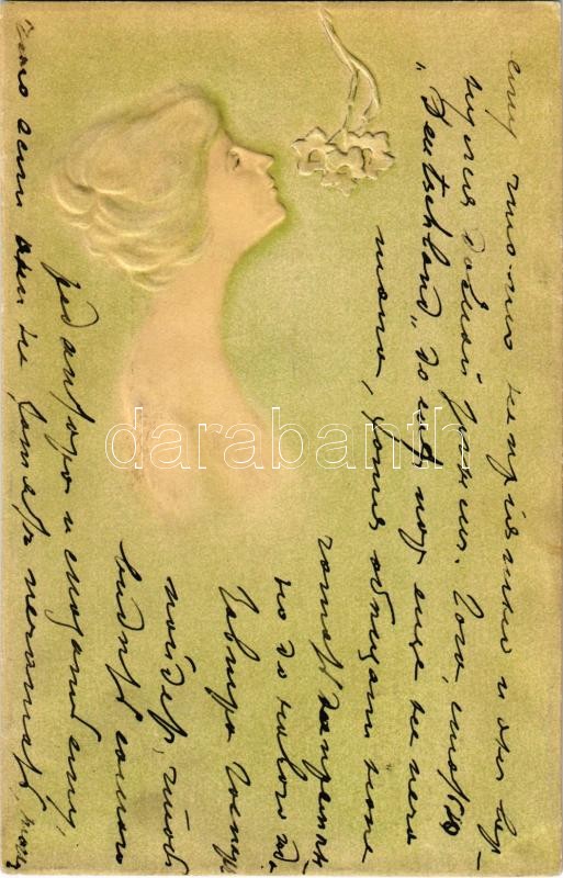 Art Nouveau lady. B.R.W. 417. Raphael Kirchner style Emb. litho art po... https://www.darabanth.com/de/389-Fernauktion/389.0/Ansichtskarten/Kunstlerkarten~1500090/Art-Nouveau-lady-BRW-417-Raphael-Kirchner-style-Emb-litho-art-postcard~II2180021