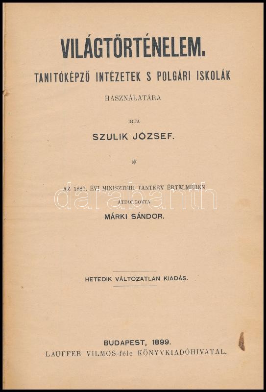 Szulik József: Világtörténelem. Tanítóképző intézetek s polgári iskolá... https://www.darabanth.com/de/389-Fernauktion/389.0/Bucher/Bucher-Geschichte~1000004/Szulik-Jozsef-Vilagtortenelem-Tanitokepzo-intezetek-s-polgari-iskolak-Bp-1899-Lauff~II2338123