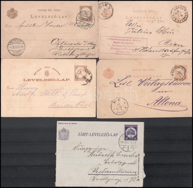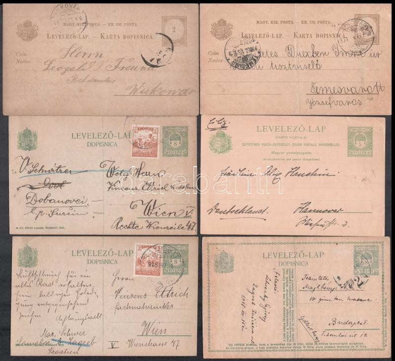 Beschreibung: 20 db díjjegyes levelezőlap 1883-tól, közte kétnyelvű, zárt és díjkiegészített