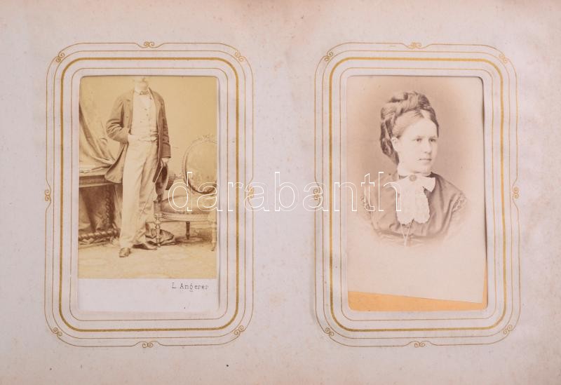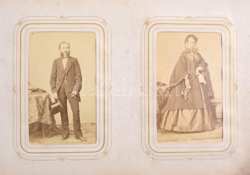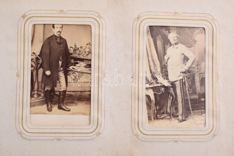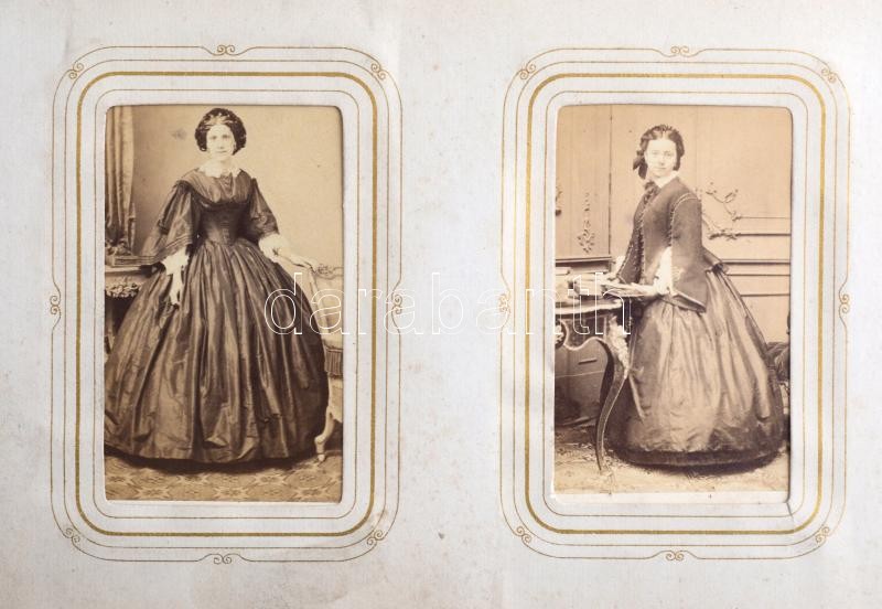 cca 1860 A Fabricius, Kuncz, Ghyczy családok fotóalbuma a családtagok és főrangú ismerőseik vizitkártyáival. 46 db fotó korabeli, sérült vászonkötésű albumban. A fotók jó része feliratozott