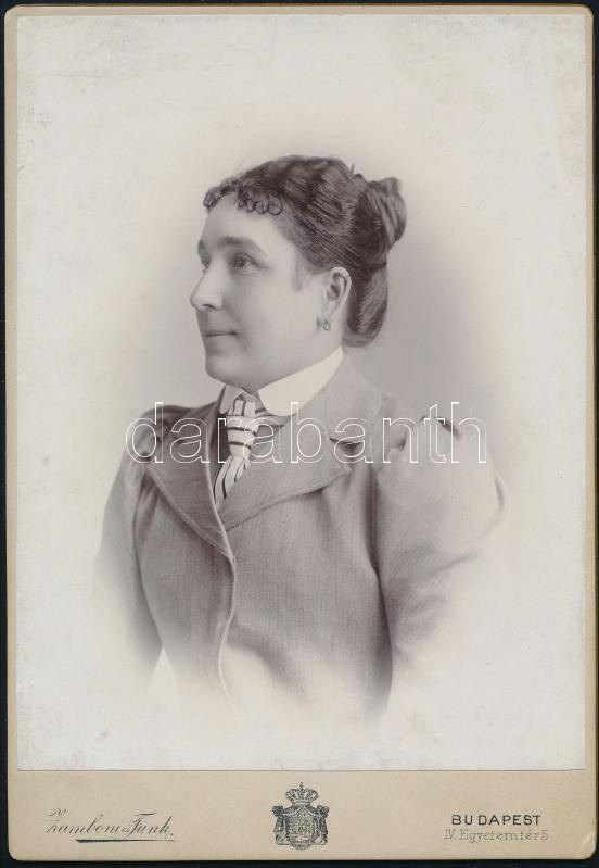 cca 1899 Budapest, Zamboni és Funk fényképészeti műtermében készült, keményhátú vintage fotó, hátoldalán (egyedi módon!) listázva a kiállítási eredményeket, 16,5x11,4 cm