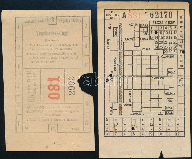 Budapesti közúti vaspálya társaság és BSzKRt. vonalszakaszjegy és átsz... https://www.darabanth.com/de/389-Fernauktion/389.0/Kunst-Dokumente-andere-Sammelgebiete/Dokument~18/Budapesti-kozuti-vaspalya-tarsasag-es-BSzKRt-vonalszakaszjegy-es-atszallojegy-2-db~II2341817