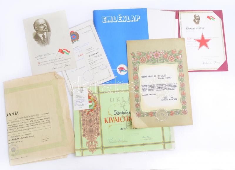 Beschreibung: cca 1960-1980 10 db szocreál oklevél