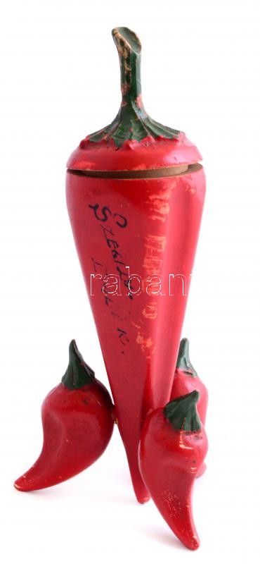 Szegedi emlék. Fa paprika formájú tartó, kézzel festett. 14 cm https://www.darabanth.com/de/389-Fernauktion/389.0/Kunst-Dokumente-andere-Sammelgebiete/Flohmarkt~12/Szegedi-emlek-Fa-paprika-formaju-tarto-kezzel-festett-14-cm~II2342258