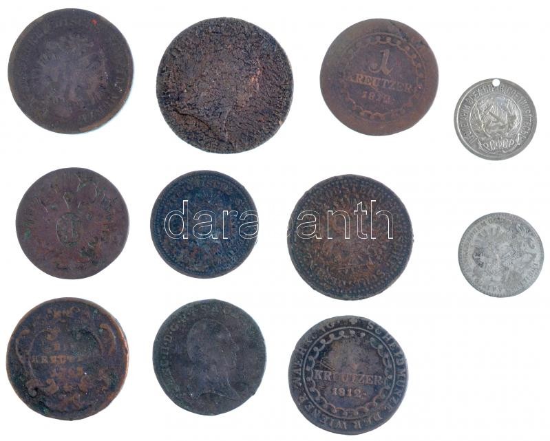 Beschreibung: Ausztria 1763-1870. 1kr-10kr (10db) + Szovjetunió 1923. 10k Ag (átfúrt) T:2-,3