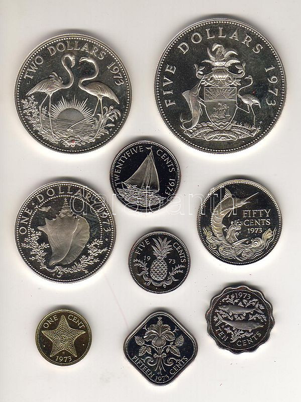 Bahama 1973. 1c, 5c, 10c, 15c, 25c, 50c Ag, 1$ Ag, 2$, 5$, Szett T:PP ... https://www.darabanth.com/de/39-Fernauktion/39.0/Numismatik/~228/Bahama-1973-1c-5c-10c-15c-25c-50c-Ag-1USD-Ag-2USD-5USD-Szett-TPP-eredeti-diszdobozban~II75951