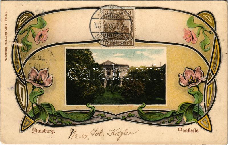 Beschreibung: 1908 Duisburg, Tonhalle / music hall. Carl Schwarz Art Nouveau, floral, TCV card