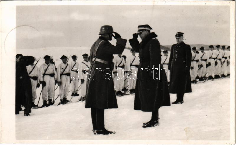 Beschreibung: 1939 Uzsok, Uzok, Uzhok; Magyar-Lengyel baráti találkozás a visszafoglalt ezeréves határon, katonák sífelszerelésben / Hungarian-Polish meeting on the historical border, military officers, soldiers wearing ski equipment