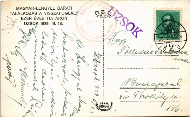 1939 Uzsok, Uzok, Uzhok; Magyar-Lengyel baráti találkozás a visszafogl... https://www.darabanth.com/de/39-Gross-Auktion/39.1/Ansichtskarten/Karpatenukraine~16043/1939-Uzsok-Uzok-Uzhok-Magyar-Lengyel-barati-talalkozas-a-visszafoglalt-ezereves-hataron-kat~II2730980