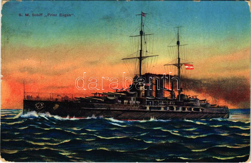 1915 SMS Prinz Eugen az Osztrák-Magyar Haditengerészet Tegetthoff-osztályú csatahajója / K.u.K. Kriegsmarine / WWI Austro-Hungarian Navy SMS Prinz Eugen dreadnought battleship. G. C. Pola 1913/14. (EK)
