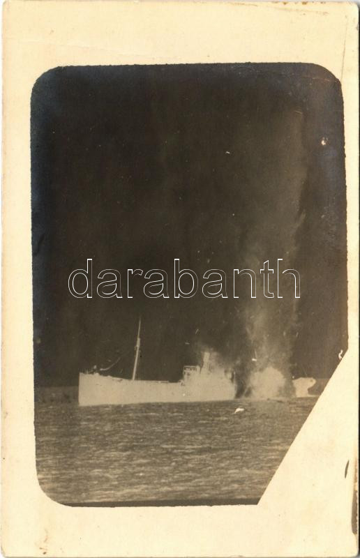 Beschreibung: 1916 Osztrák-magyar haditengerészet megtorpedóz egy civil gőzöst / K.u.K. Kriegsmarine / Austro-Hungarian Navy torpedoing a civilian steamship. photo (fa)