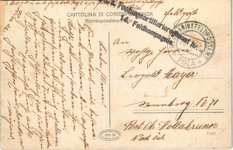 Beschreibung: 1916 SMS Radetzky az Osztrák-Magyar Haditengerészet Radetzky-osztályú csatahajója / K.u.K. Kriegsmarine / WWI Austro-Hungarian Navy Radetzky-class pre-dreadnought battleship. C. Fano 1915/16. + "K.u.K. Marinefeldpostamt" (Rb)