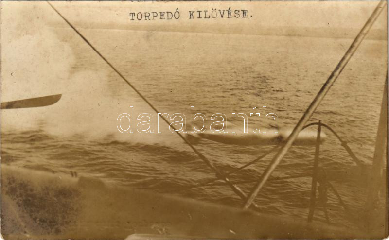 Osztrák-magyar torpedónaszád egy torpedó kilövésének pillanatában / K.u.K. Kriegsmarine Lancieren eines Torpedos / Austro-Hungarian Navy torpedo boat in the moment of firing a torpedo. A. Fischer Pola Nr. 536. (fl)