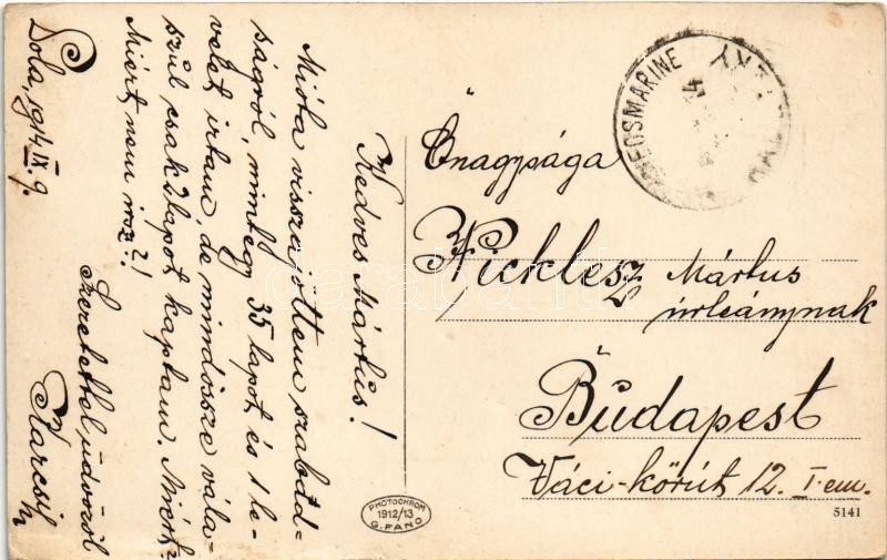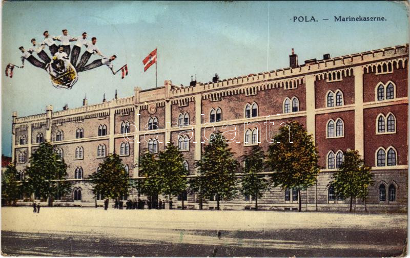 1914 Pola, Pula; K.u.K. Kriegsmarine Marinekaserne. G. Fano 1912/13 / ... https://www.darabanth.com/de/39-Gross-Auktion/39.1/Ansichtskarten/Kroatien~16045/1914-Pola-Pula-KuK-Kriegsmarine-Marinekaserne-G-Fano-191213-Osztrak-magyar-haditengeresz~II2721054