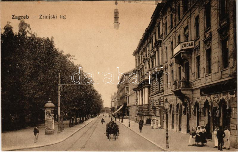 Zagreb, Zágráb; Zrinjski trg, Zubar / Zrínyi tér, hirdetőoszlop, fogor... https://www.darabanth.com/de/39-Gross-Auktion/39.1/Ansichtskarten/Kroatien~16045/Zagreb-Zagrab-Zrinjski-trg-Zubar-Zrinyi-ter-hirdetooszlop-fogorvos-Vasuti-levelezolap~II2721082
