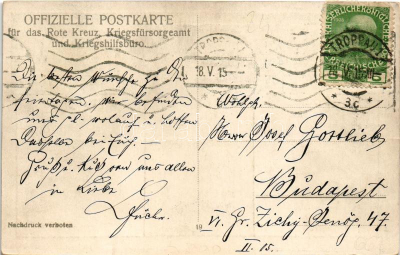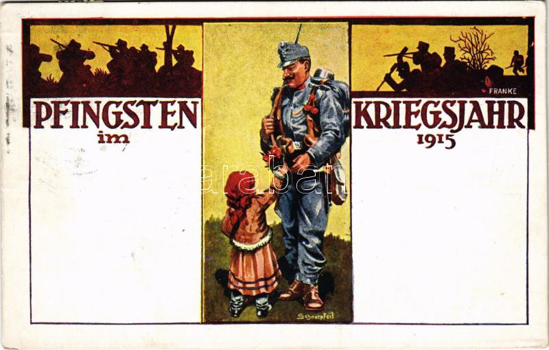 1915 Pfingsten im Kriegsjahr 1915. Offizielle Postkarte für das Rote Kreuz, Kriegsfürsorgeamt und Kriegshilfsbüro / Első világháborús osztrák-magyar katonai pünkösdi üdvözlet / WWI Austro-Hungarian K.u.K. military art postcard with Pentecost greeting s: Franke, Schnorpfeil