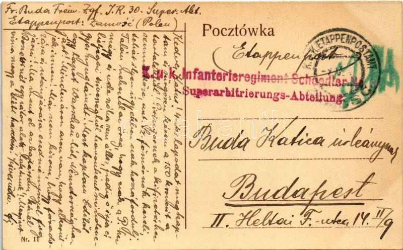 Beschreibung: Zamosc, Ul. Sadowa / street + "K.u.k. Infanterieregiment Schoedler No. 30. Superarbitrierungs-Abteilung"
