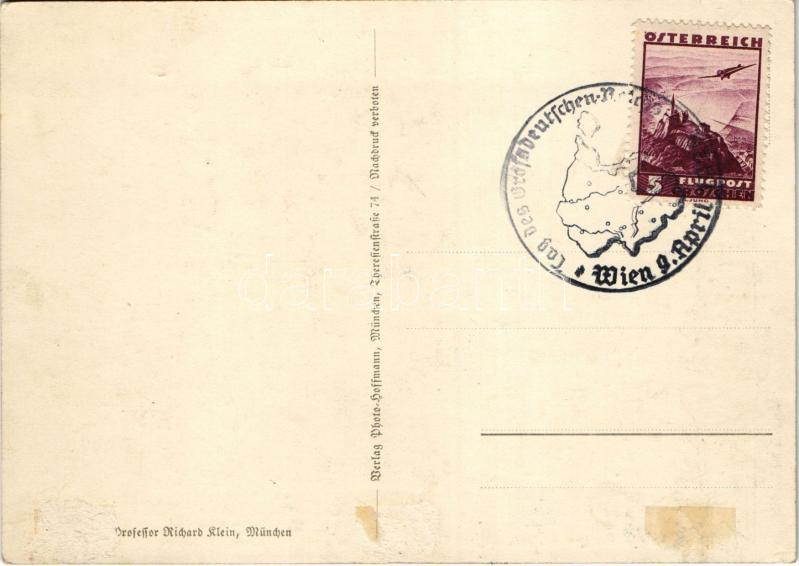 1938 März 13. Ein Volk, ein Reich, ein Führer! / Adolf Hitler, NSDAP German Nazi Party propaganda, map, swastika. 6 Ga. s: Professor Richard Klein + "Tag des Großdeutschen-Reichs Wien 9. April 1938" So. Stpl. (Rb)
