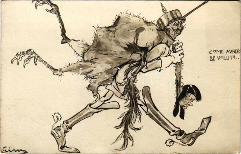 Come avrebbe be voluto... / Első világháborús olasz németellenes katon... https://www.darabanth.com/de/39-Gross-Auktion/39.1/Ansichtskarten/Propaganda-Politik~16112/Come-avrebbe-be-voluto-Elso-vilaghaborus-olasz-nemetellenes-katonai-gunyos-propaganda-W~II2738819