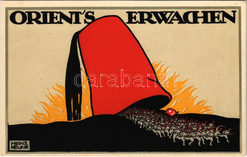 Orient's erwachen. Künstler-Kriegs-Postkarte No. 1. von J.C. König & Ebhardt / Turkish awakening. WWI military propaganda / Ébred a Kelet. Első világháborús török katonai propaganda s: Heinz Keune