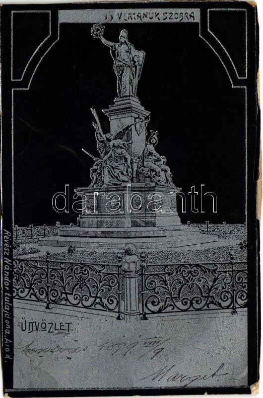 Beschreibung: 1899 (Vorläufer) Arad, 13 vértanúk szobra. Szecessziós fémes hatású fóliás képeslap / martyrs' monument. Art Nouveau, metallic foil postcard (vágott / cut)