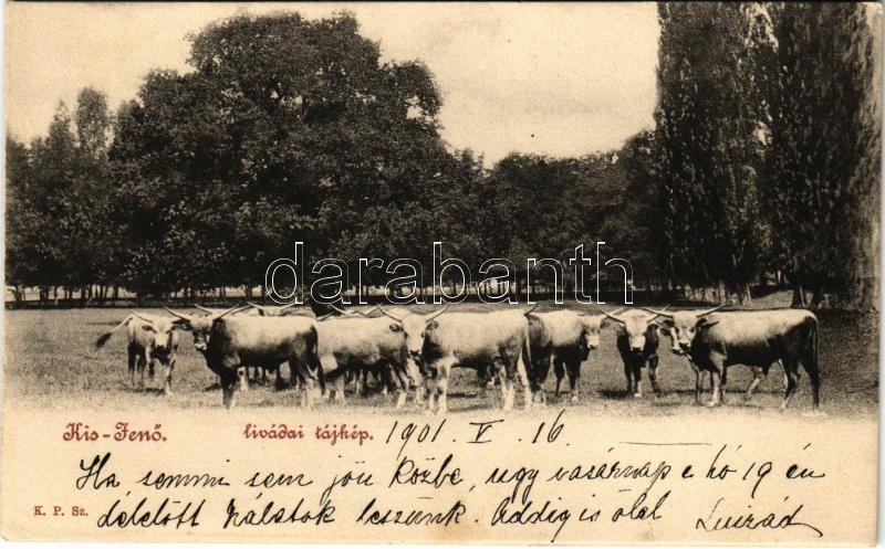 1901 Kisjenő, Kis-Jenő, Chisineu-Cris; Livádai tájkép marhagulyával / ... https://www.darabanth.com/de/39-Gross-Auktion/39.1/Ansichtskarten/Siebenburgen~16041/1901-Kisjeno-Kis-Jeno-Chisineu-Cris-Livadai-tajkep-marhagulyaval-farm-with-cattle~II2726180