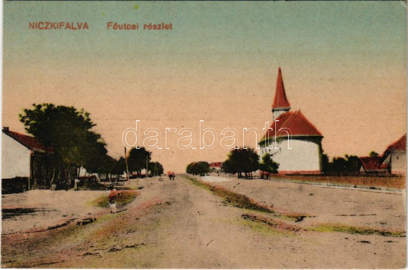 Beschreibung: Niczkyfalva, Nickifalva, Kutas, Nitzkydorf, Nitchidorf; Fő utca, templom / main street, church