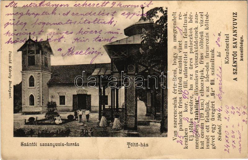1904 Szántó, Santovka; Szántói savanyúvíz forrás, töltőház. Divald Kár... https://www.darabanth.com/de/39-Gross-Auktion/39.1/Ansichtskarten/Slowakei~16042/1904-Szanto-Santovka-Szantoi-savanyuviz-forras-toltohaz-Divald-Karoly-kiadasa-mine~II2740680