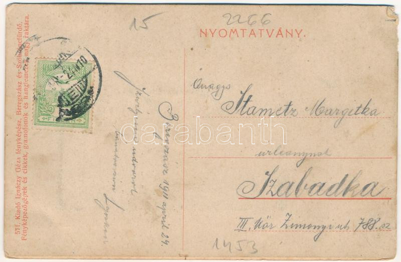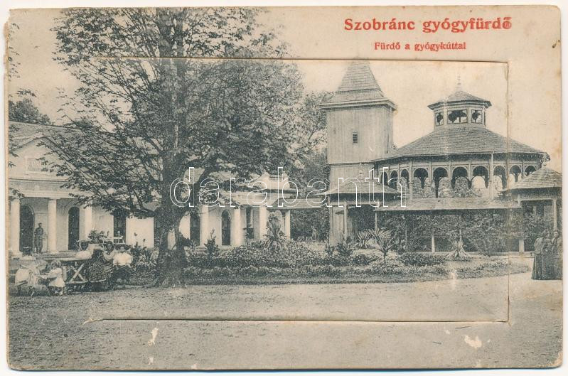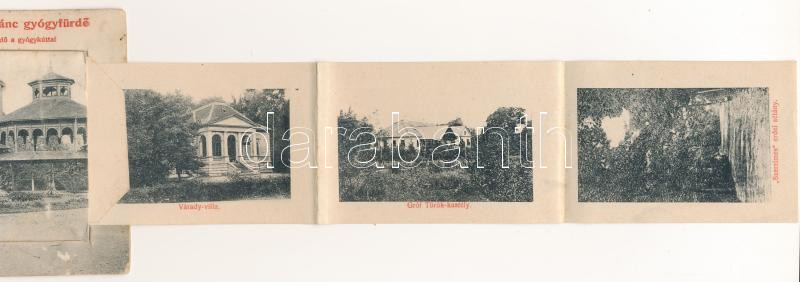 1911 Szobránc-fürdő, Kúpele Sobrance; Fürdő a gyógykúttal. leporellólap 10 képpel: Gáborháza és István lak, Józsefháza és Magány nyaraló, Nagyvendéglő, Kóser vendéglő és kocsma, Várady villa, Gróf Török kastély, stb. Ignáczy Géza fényképész kiadása / spa, bath. leporellocard with 10 pictures: villas, Jewish restaurant, castle, etc. (EM)