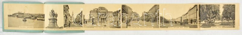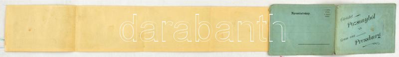 Pozsony, Pressburg, Bratislava; Üdvözlő leporello 6 lappal: Frigyes főherceg utca, Mihály kapu utca, Városi színház, Vásártér, Liget. Bediene dich allein / 6-tiled greeting leporello: streets, squares, theatre, park, shops (kis szakadások / tears)