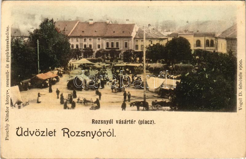 Beschreibung: Rozsnyó, Roznava; Vásártér, piac. Pauchly Nándor kiadása, Vogel D. felvétele 1900 / market
