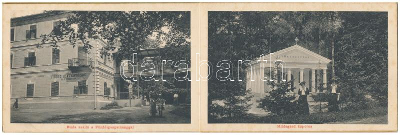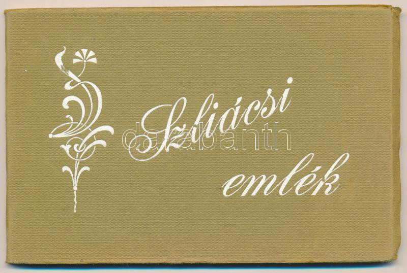 Szliács, Sliac; Nem-képeslapos füzet 12 lappal: Újpest, Buda, Othon, Bristoll, Pest és Hungária szálló, Üdvözlégy nyaraló, Rózsapark, üvegház, fürdőház és igazgatóság, Hildegárd kápolna. Hátoldalon Kerekes Miklós úri divat, díszműáruk, sport és utazószerek raktára reklám / non-postcard booklet with 12 cards: hotels, spa, villa, greenhouse (fl)