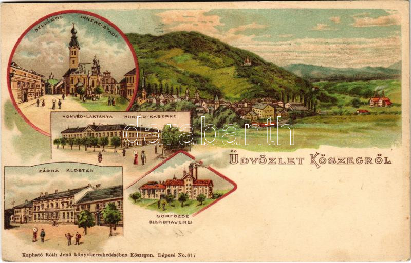 1898 (Vorläufer) Kőszeg, Belváros, Honvéd laktanya, zárda, Sörfőzde. R... https://www.darabanth.com/de/39-Gross-Auktion/39.1/Ansichtskarten/Ungarn~16040/1898-Vorlaufer-Koszeg-Belvaros-Honved-laktanya-zarda-Sorfozde-Roth-Jeno-Art-Nouveau-~II2729809