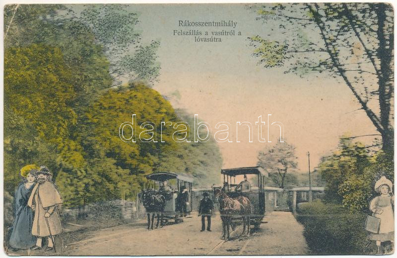 1910 Budapest XVI. Rákosszentmihály, Felszállás a vasútról a lóvasútra... https://www.darabanth.com/de/39-Gross-Auktion/39.1/Ansichtskarten/Ungarn~16040/1910-Budapest-XVI-Rakosszentmihaly-Felszallas-a-vasutrol-a-lovasutra-vonat-Kaphato-Szu~II2736594