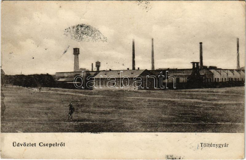 1916 Budapest XXI. Csepel, Tölténygyár (EK) https://www.darabanth.com/de/39-Gross-Auktion/39.1/Ansichtskarten/Ungarn~16040/1916-Budapest-XXI-Csepel-Toltenygyar-EK~II2724255