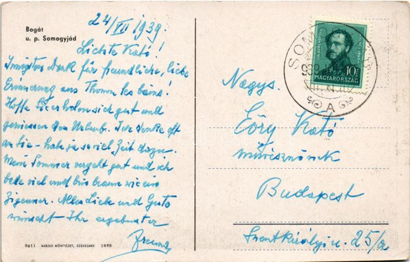 1939 Alsóbogát, Bogát (Somogyjád); Inkey László kastélya (EK) https://www.darabanth.com/de/39-Gross-Auktion/39.1/Ansichtskarten/Ungarn~16040/1939-Alsobogat-Bogat-Somogyjad-Inkey-Laszlo-kastelya-EK~II2728264