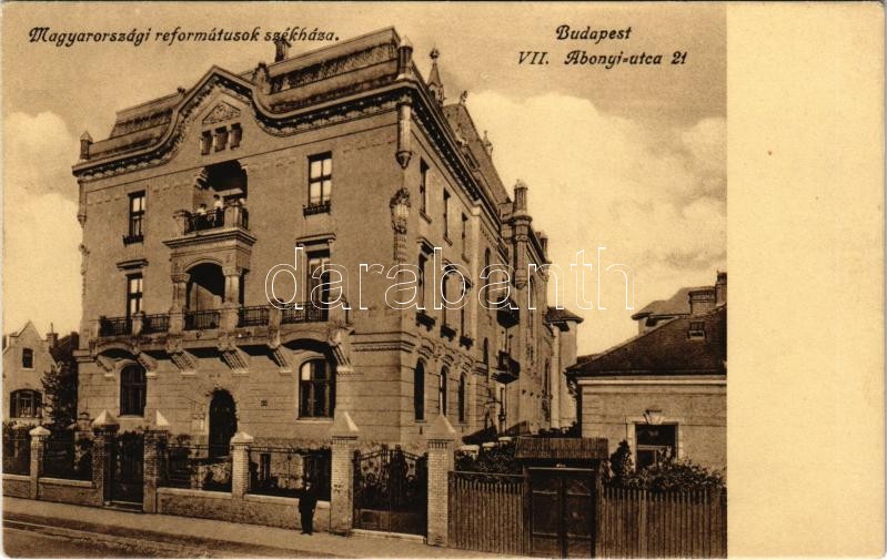 Budapest XIV. Magyarországi reformátusok székháza. Abonyi utca 21. https://www.darabanth.com/de/39-Gross-Auktion/39.1/Ansichtskarten/Ungarn~16040/Budapest-XIV-Magyarorszagi-reformatusok-szekhaza-Abonyi-utca-21~II2639026